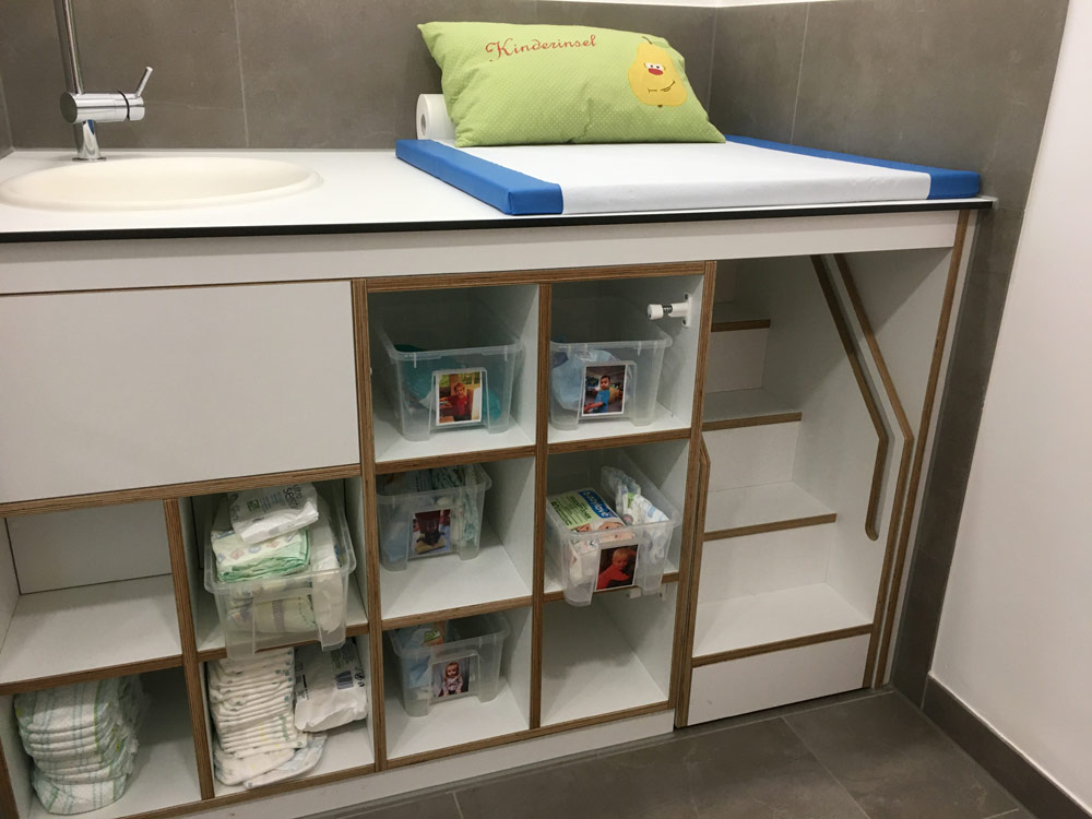 Wir bauen Wickelkommoden, Garderoben, Regale und vieles mehr für den täglichen Einsatz. Dabei denken wir an kleine Hände, an Bewegung, an Farben und an sinnvolle Abläufe. Alles ist auf den Alltag in der Kita abgestimmt – robust, kindgerecht und lange haltbar.